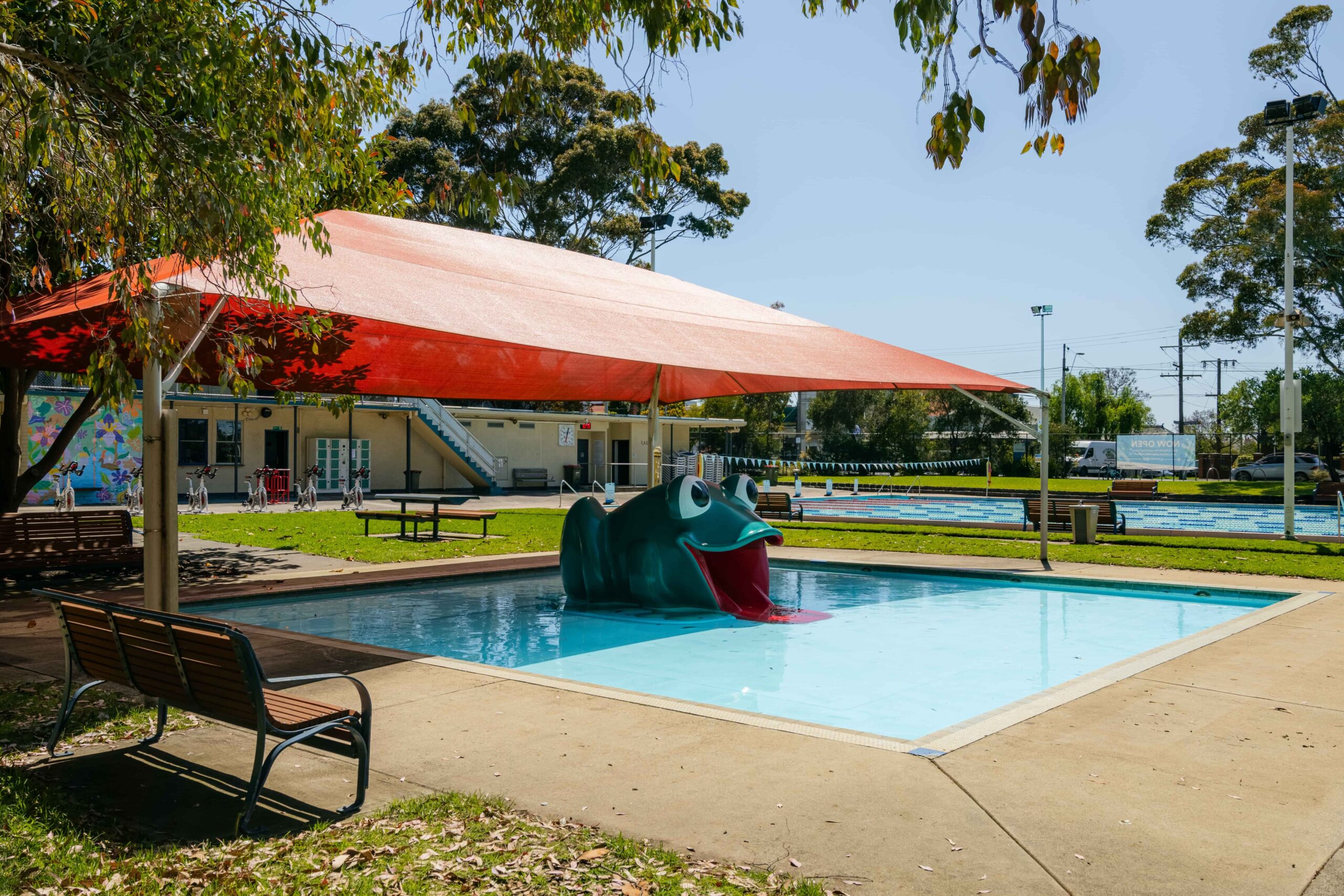 Shaded Toddlers Pool & Frog Slide